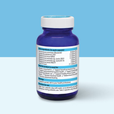 Many factors can affect intestinal microflora including lifestyle factors such as diet and stress. The probiotics in Ther-biotic Bio Daily can support beneficial gut flora during antibiotic use, restore good intestinal microflora and relieve gastrointestinal symptoms such as bloating and discomfort. The strains were well tolerated in clinical studies.